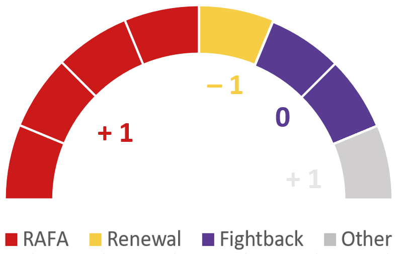 | _Rank and File Action_ | 35.6% | -0.7% | 202 | 3 (+1) |