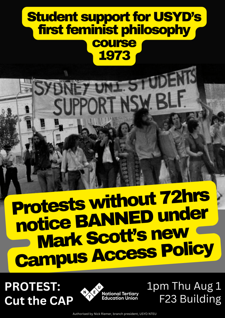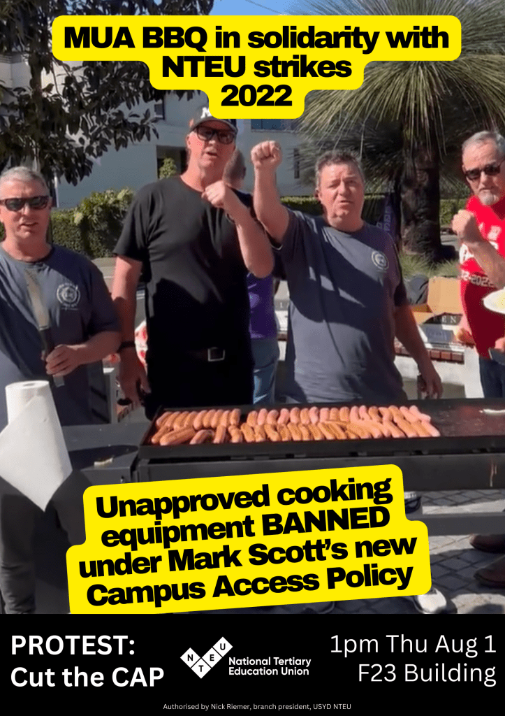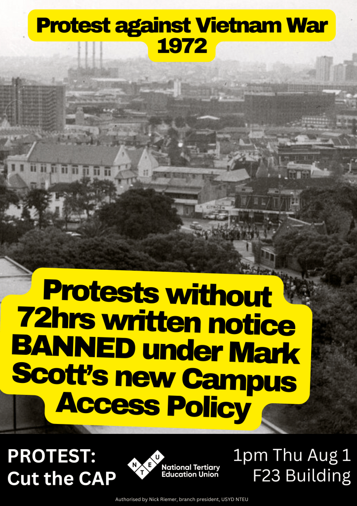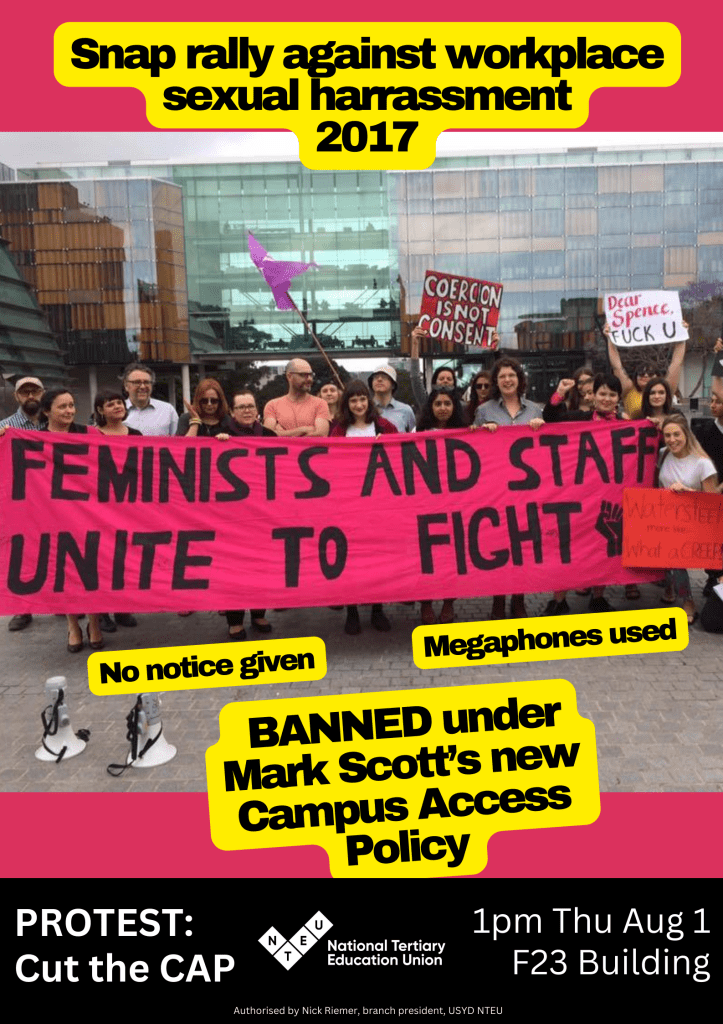 Stop the Campus Access Policy (August 2024 Protest, NTEU posters)