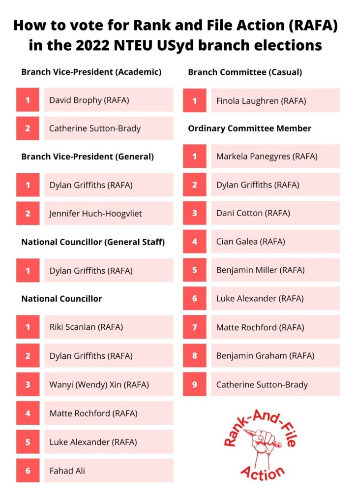 With congratulations to RAFA members, Nick Riemer who has been elected unopposed as Branch President, and Dani Cotton who has been elected unopposed as National Councillor (Academic Staff).